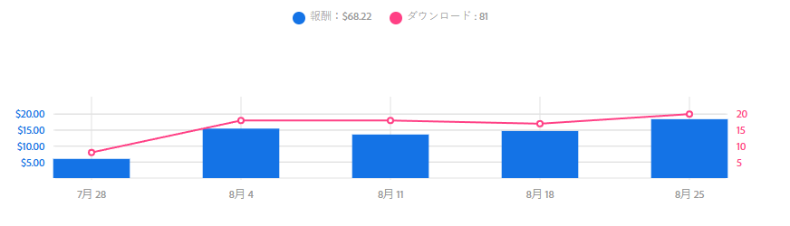 プランによって報酬額が変動するのでしょうがないですね。でもけっこうコンスタントにDLされている印象があります。