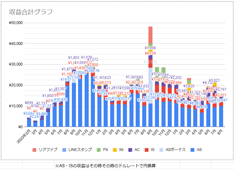 9月はアドビのAI学習ボーナスと、無料コレクションのボーナスの月なので、今年も去年とおなじぐらいもらえたら良いな…。